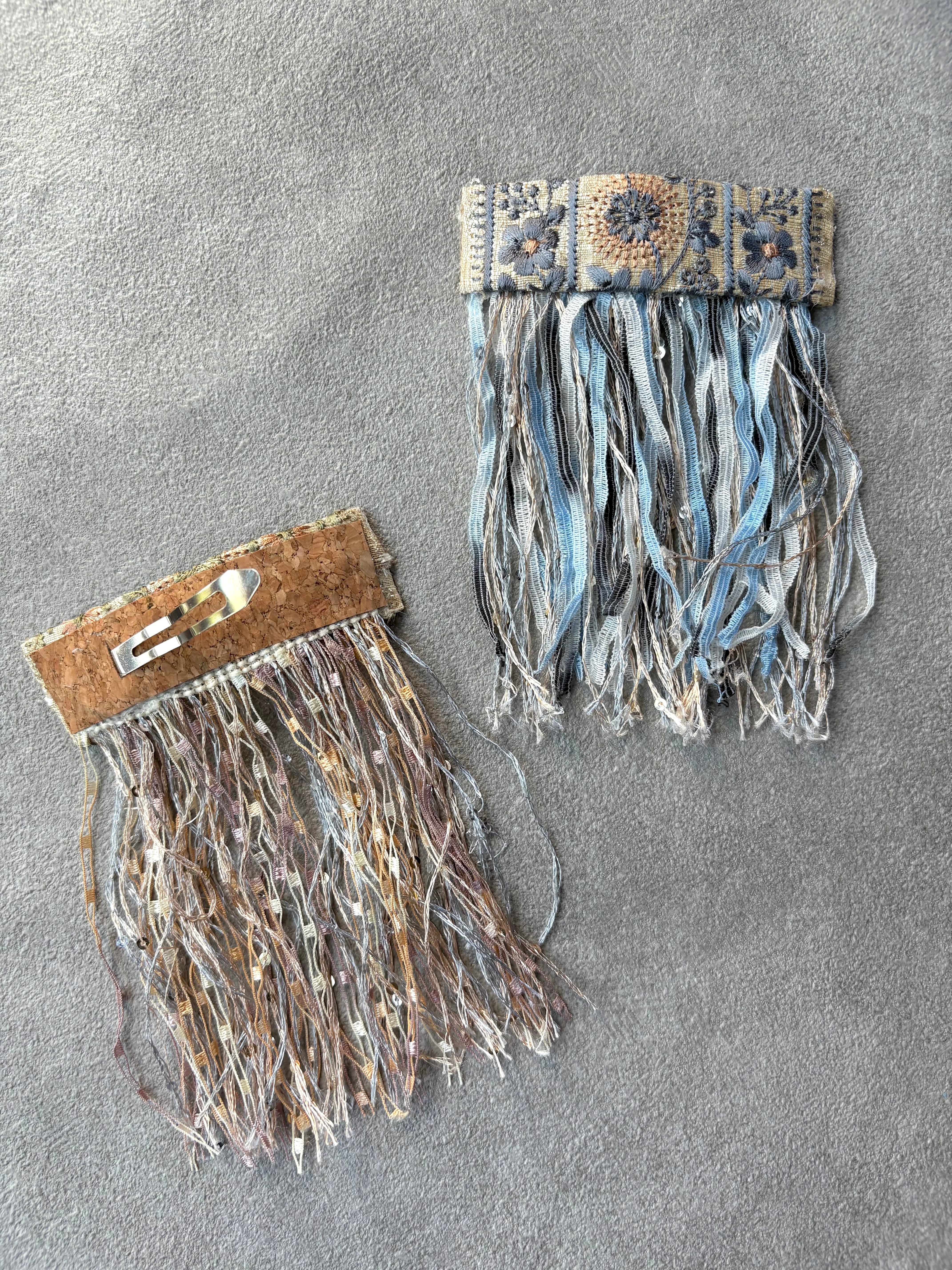 色々な糸を合わせて長めのフリンジを